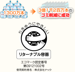 クリクラでは環境問題を考慮し、飲み終わったボトルを回収し、繰り返し使用できるリターナブルボトルを採用しています。